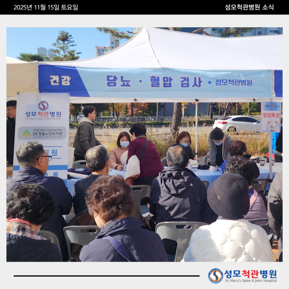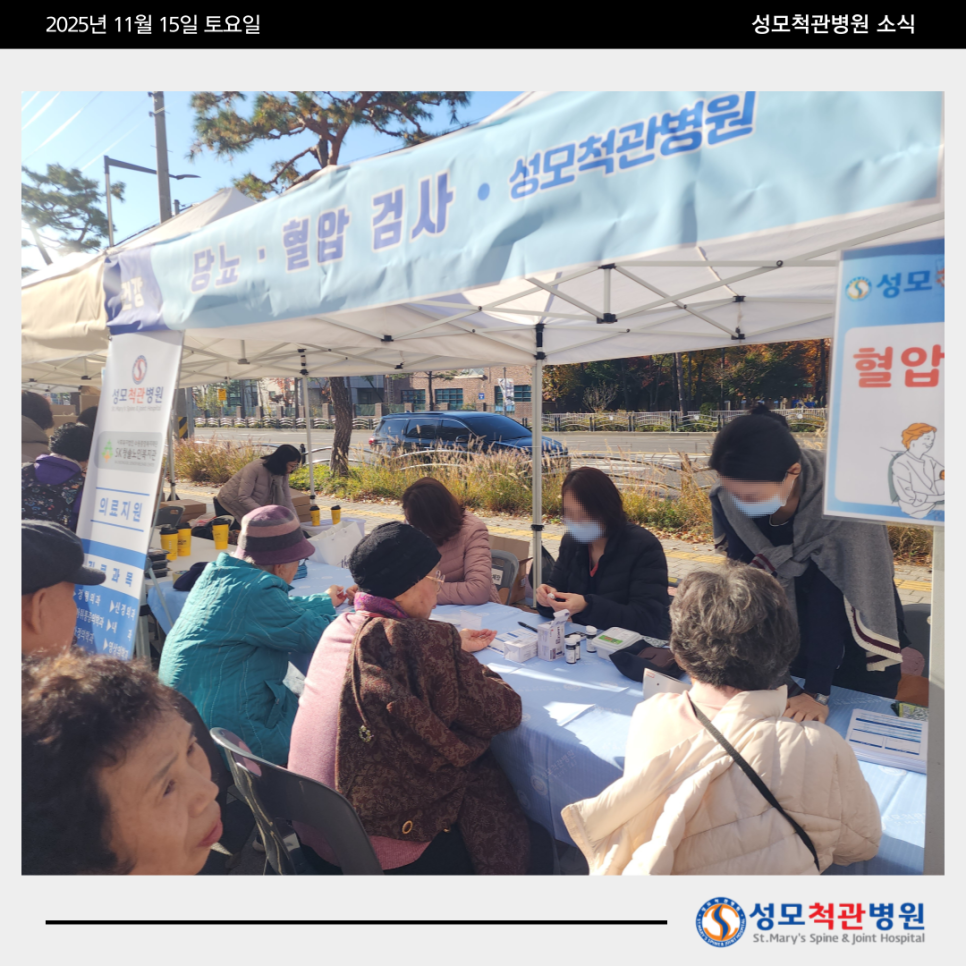 혈압 측정 및 당뇨 검사를 무료로 제공, 어르신 들을 위한 의료봉사 활동을 진행했습니다.